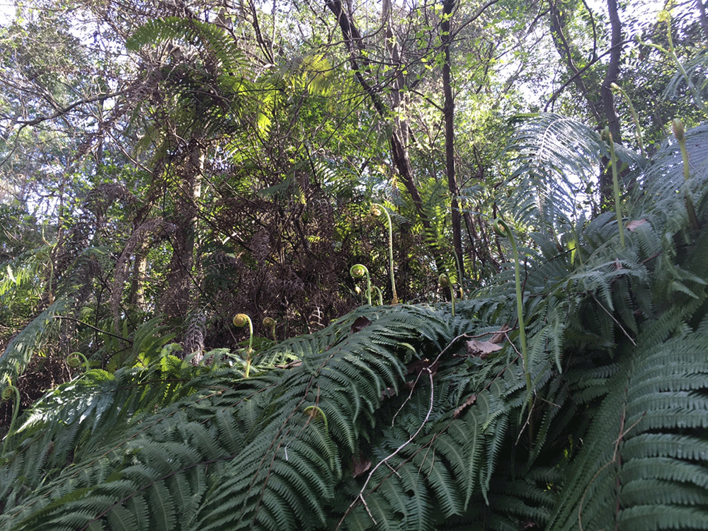 シダがなんとも言えない雰囲気を作り出しています、何かがいそう…。