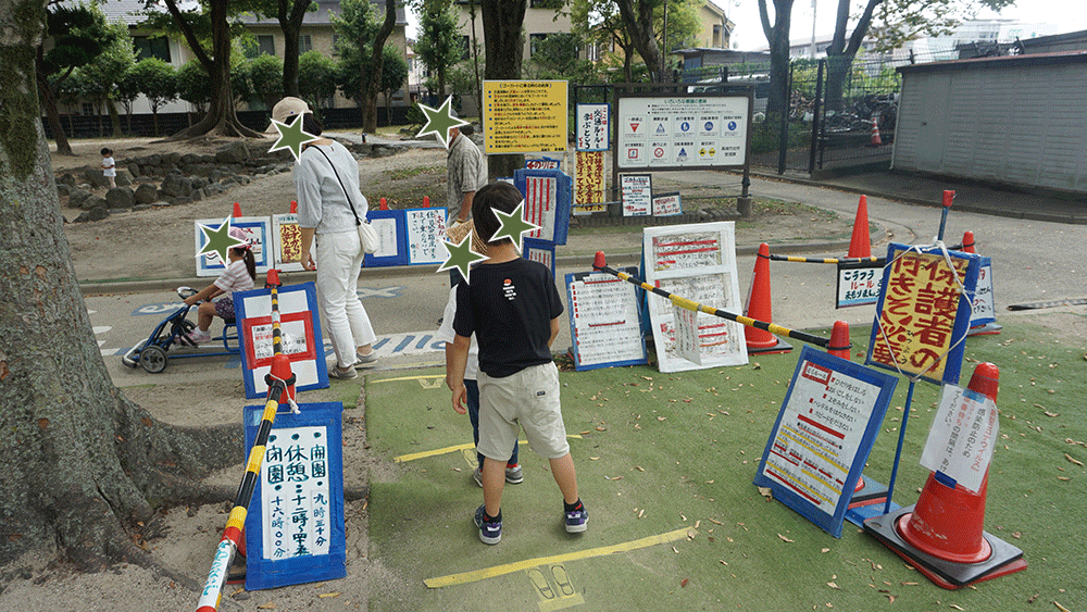 すべり台の下側は日陰になっているので、おままごとを楽しむ子供であふれていました。