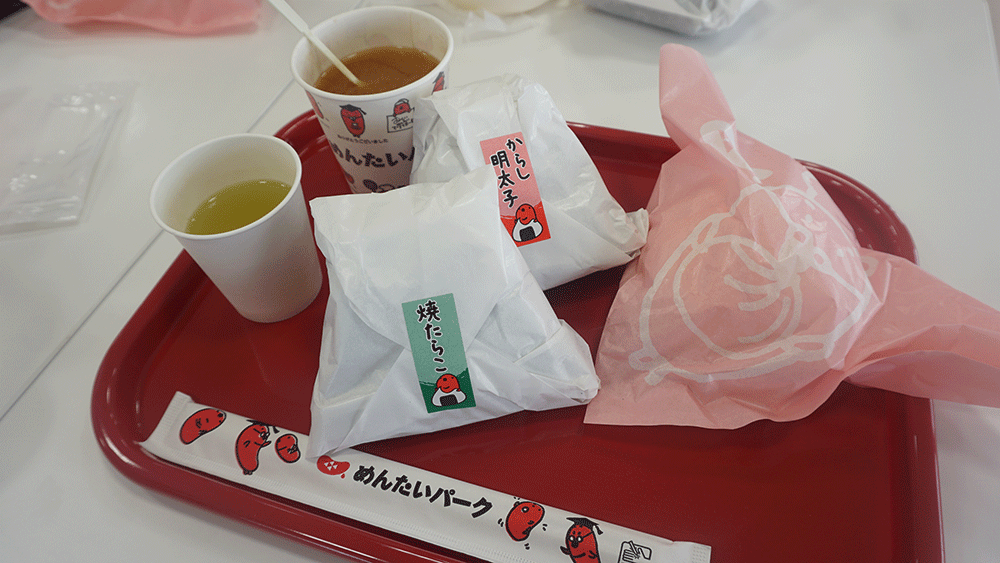 豚まんとお味噌汁は甘めのお味、明太子おにぎりは、子供のために「焼きたらこ」(からくない)を3つと「できたて明太子」を1つにしましたが、