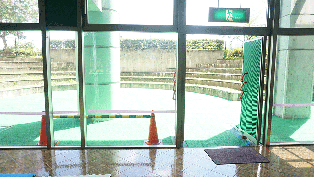プレイルームの奥の方からは解放された扉から屋外に出ることができます。