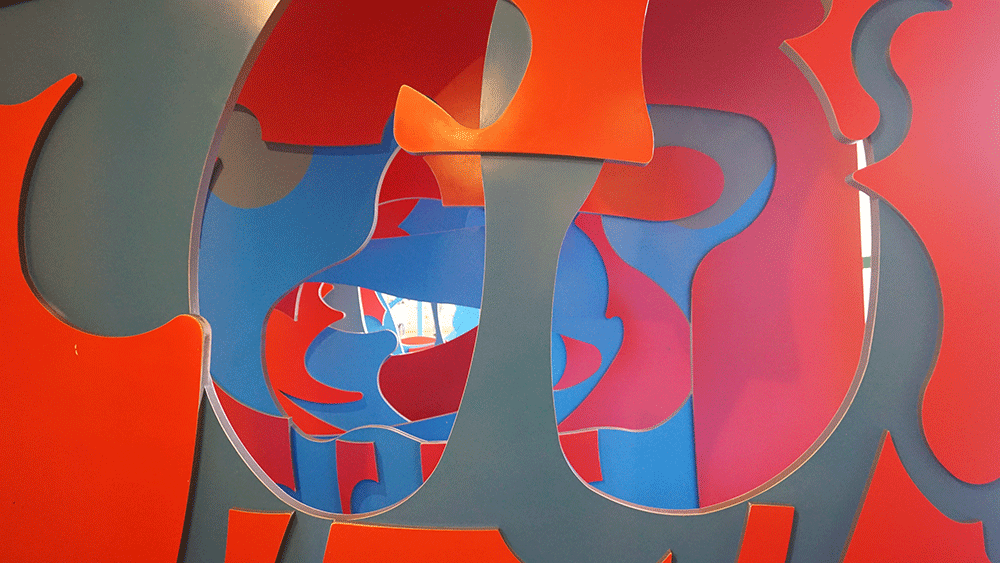 赤色は動物の形、青色は足跡?のような形が面白い遊具。