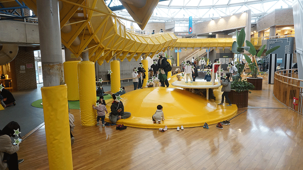 中にはたくさんの遊具や子供のための設備があります。