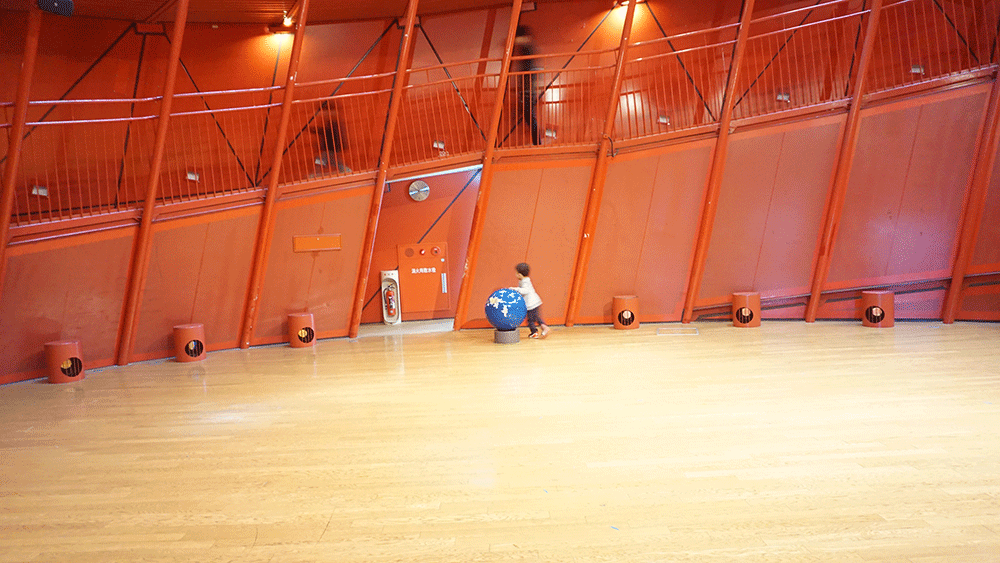 中央は広い空間、球体があって椅子?のようにつかうものが置かれているだけの空間です。