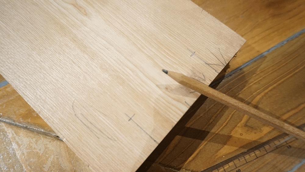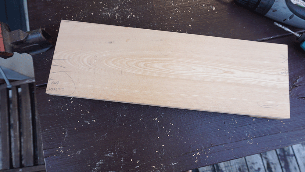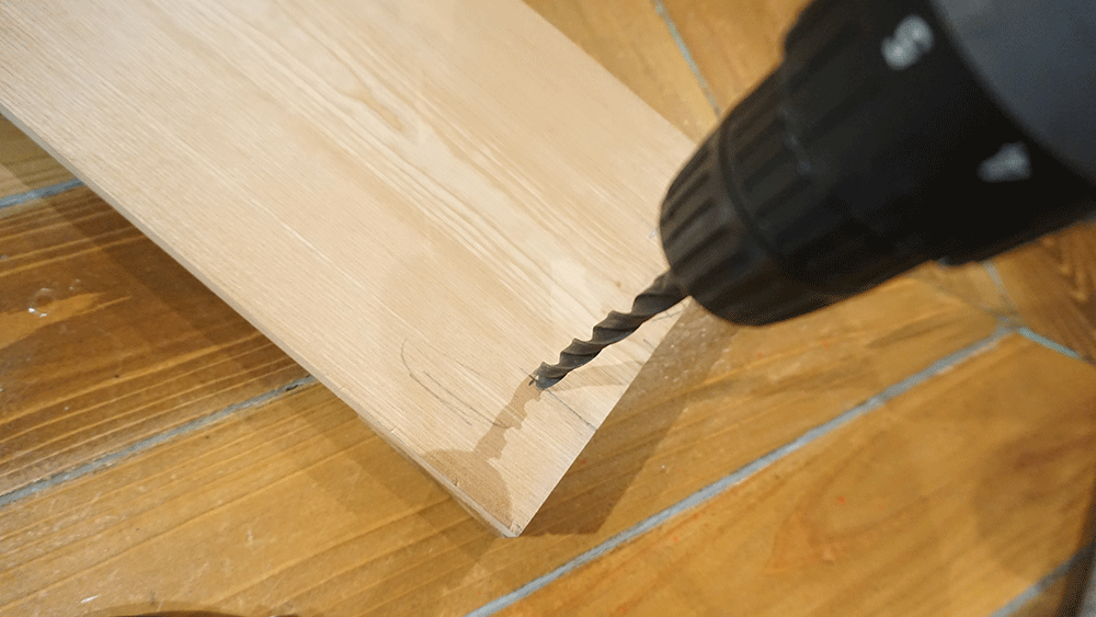 金具の径よりも少し大きい穴をドリルドライバーで空けます。