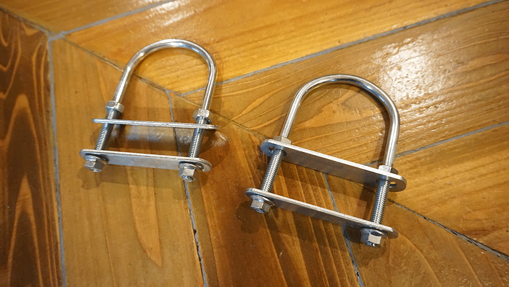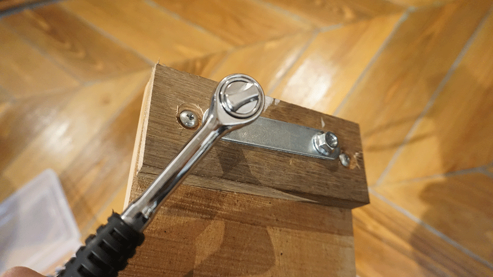 裏につけるナットを緩み止めのものにして、可能な限りの力でラチェットを使い、板にめり込むほどの締め付けをしておきます。