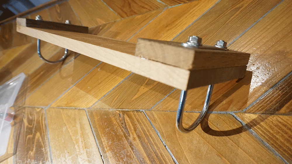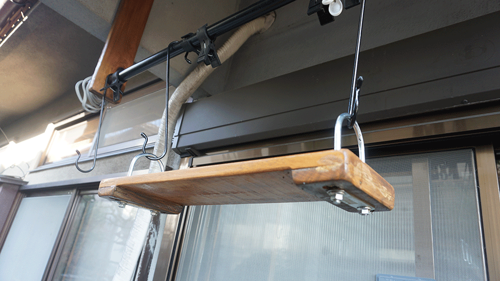 うちの天井にはちょうどいい高さに梁があるので、そこに取り付け。