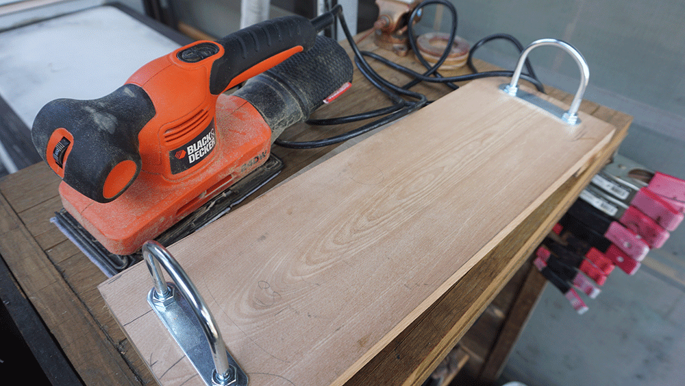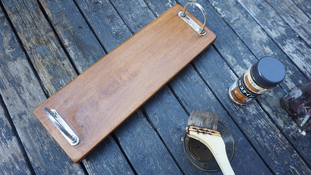 ヤスリがけをして、表面の木粉を取り除いてからウレタンニスで着色をしていきます。