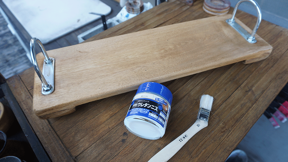 乾いたら次はウレタンニスで強度を上げつつ仕上げます。