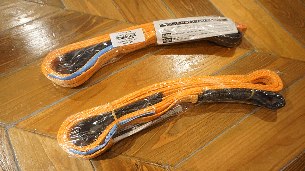 丈夫な紐かロープはないかなと色々探した結果、このベルトスリングが安価で耐久性もあり、色もカラフルで子供が好きそうだと思いこれにしました。