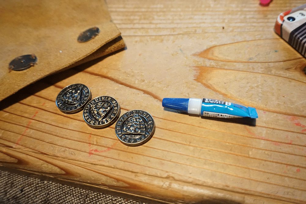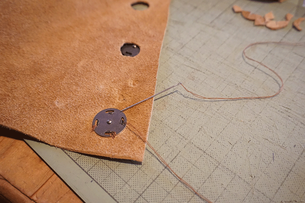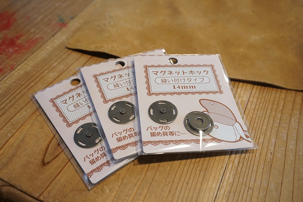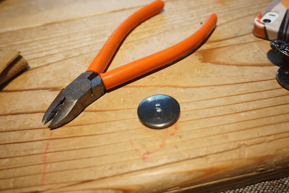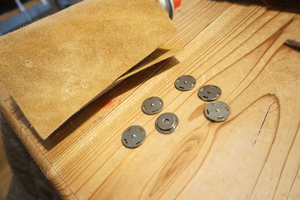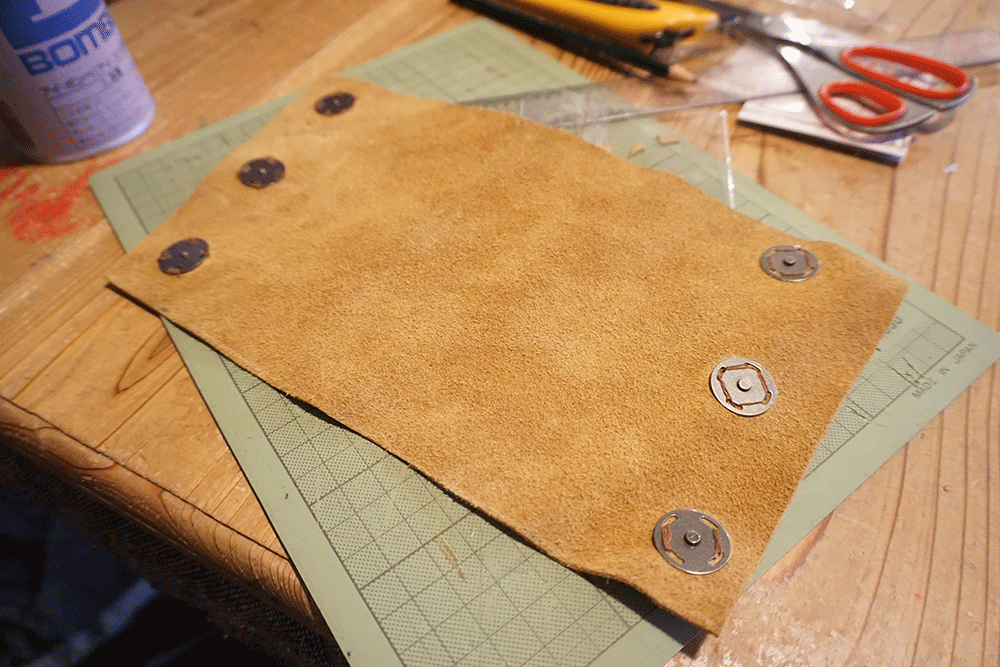 切り終えて革の形が確定したらマグネットボタンを取り付けます。