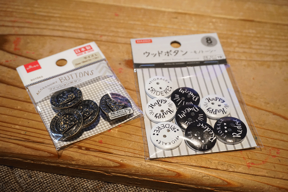 これはちょっとしたトラブルにより追加で購入したボタン二種(右側は使わず)、
