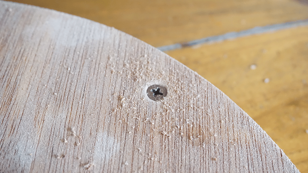 ビスは座面に出ないギリギリの長さと太さを兼ねたもので4本打ちます。