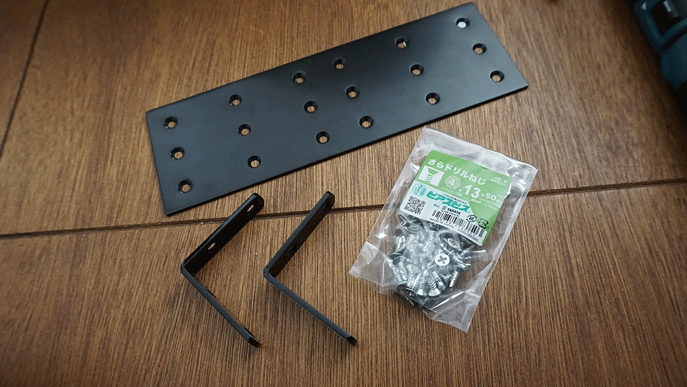 アングルはセリアで売られているもの、たまたま家にあったものなので三つしかありませんでしたがまた買い出しに行って取り付けます。