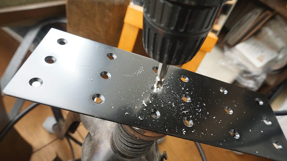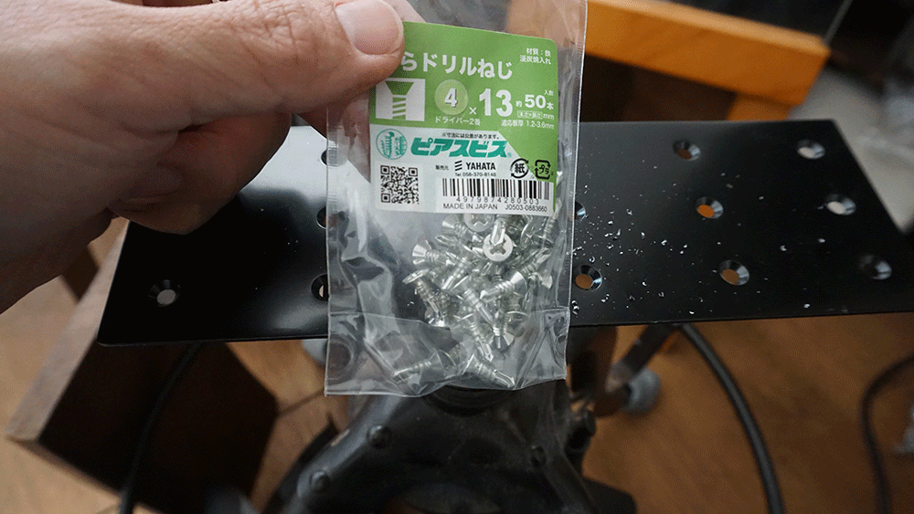ビスは、まずした穴をドリルで開け、ビス穴は皿部分が隠れるようにならしてからビス留め。