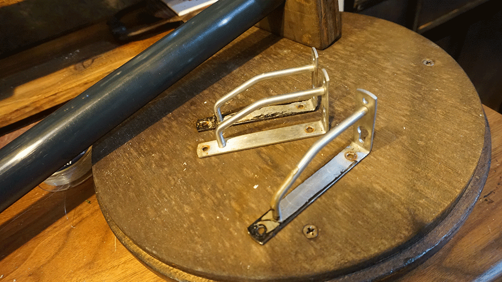もう10年以上使っているので寿命でしょうか、でも好きなデザインなので捨てるには忍びない…。溶接機を買って直すか…?いやいやそれはないな。