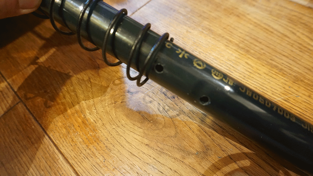 元々あったバネを付け、高さを調節できる穴も開けます。