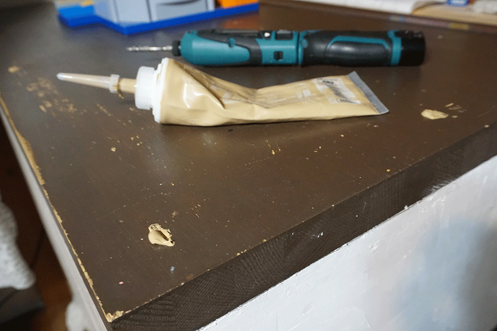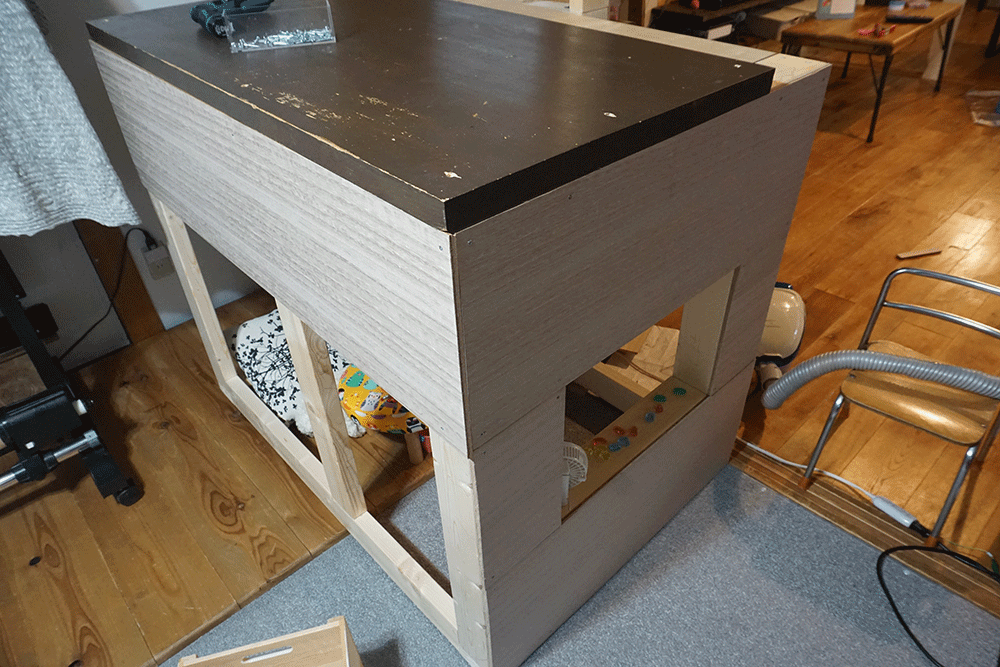 天板は以前机に使用していたイケアの木材を再利用します。もうボロボロなのであとで綺麗にします。