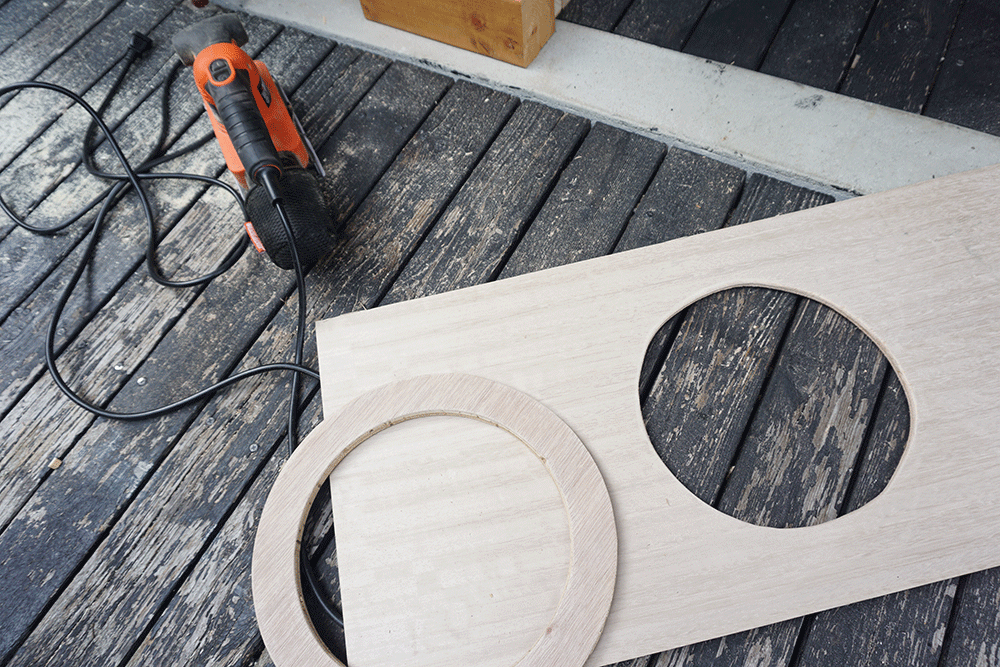 ストーブガードを作った時に出た円形の木材を利用します。