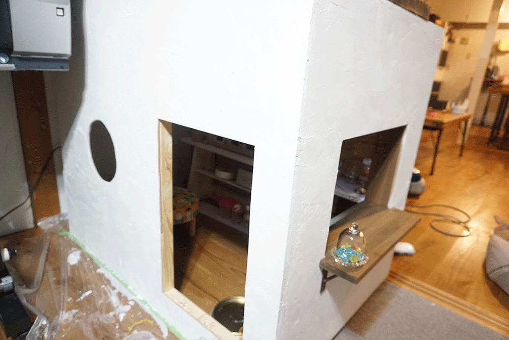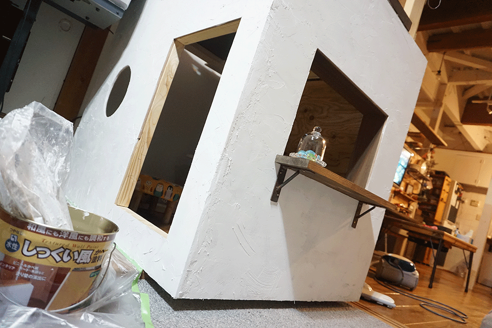 ベニヤを貼り終わったら、漆喰塗りをしていきます。