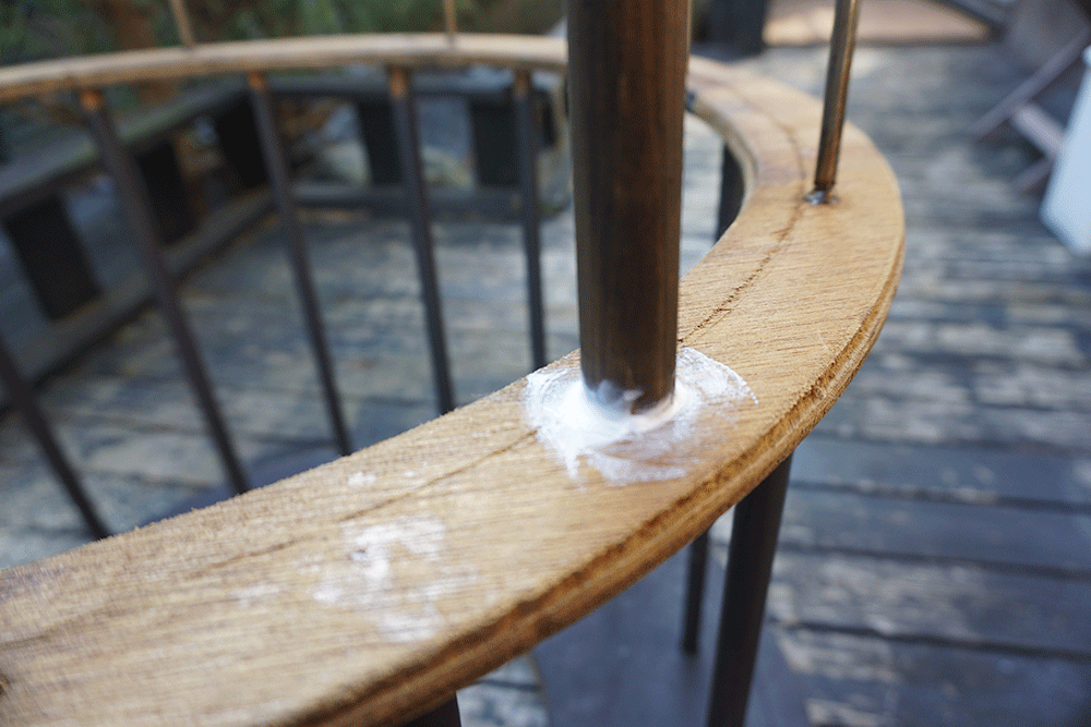はめ込むだけだとグラグラするので、そこには鉄と木材の両方に使える接着剤を流してからはめ込み固定します。