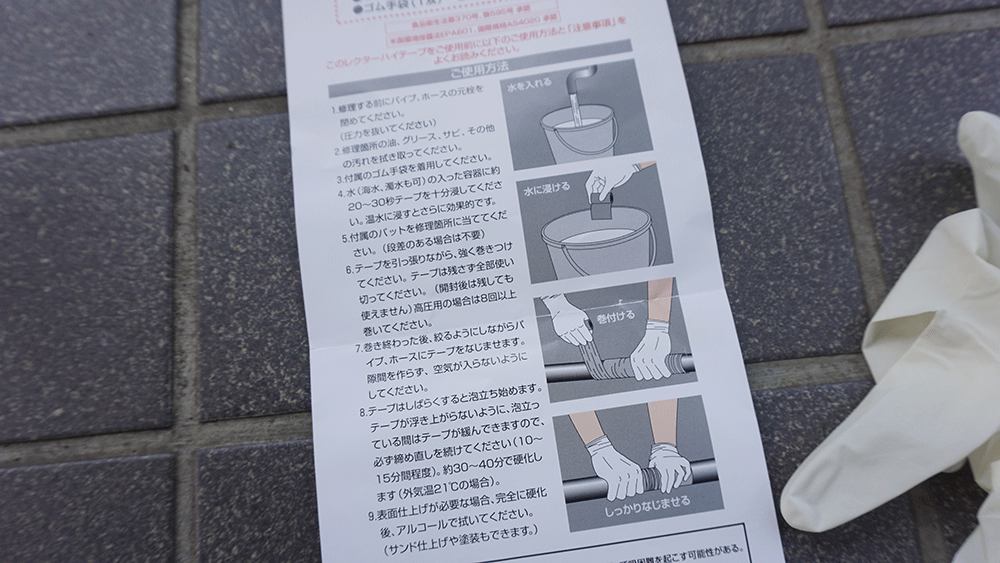 最終硬化には24時間かかるようですが、もう水を使わなければトイレにも行けないのでここで融着テープを巻くことに。