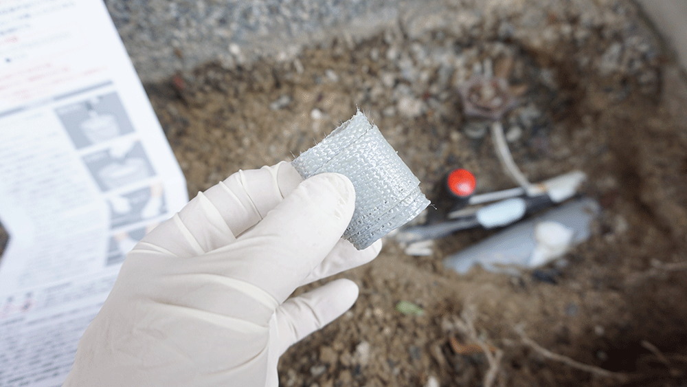 テープは全て使い切り、使用前は手袋をしてテープを全て水に浸してから巻きつけるようです。