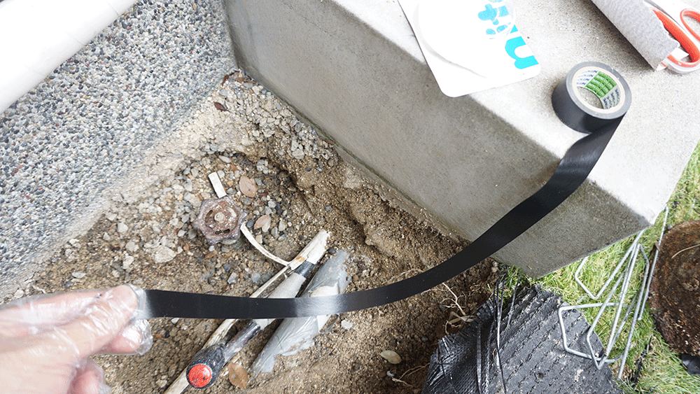水道の元栓を閉め、まずは昨日巻いた融着テープを剥がします。