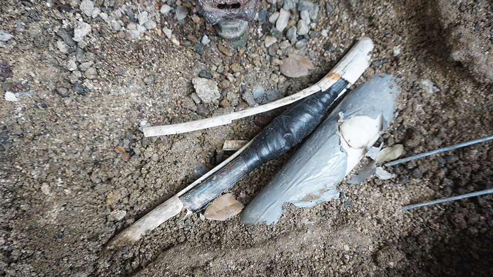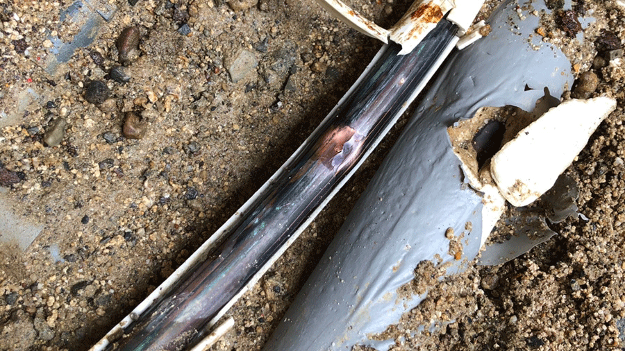 ありました、水道管、しっかりと、はっきりと見えました空けてしまった穴。