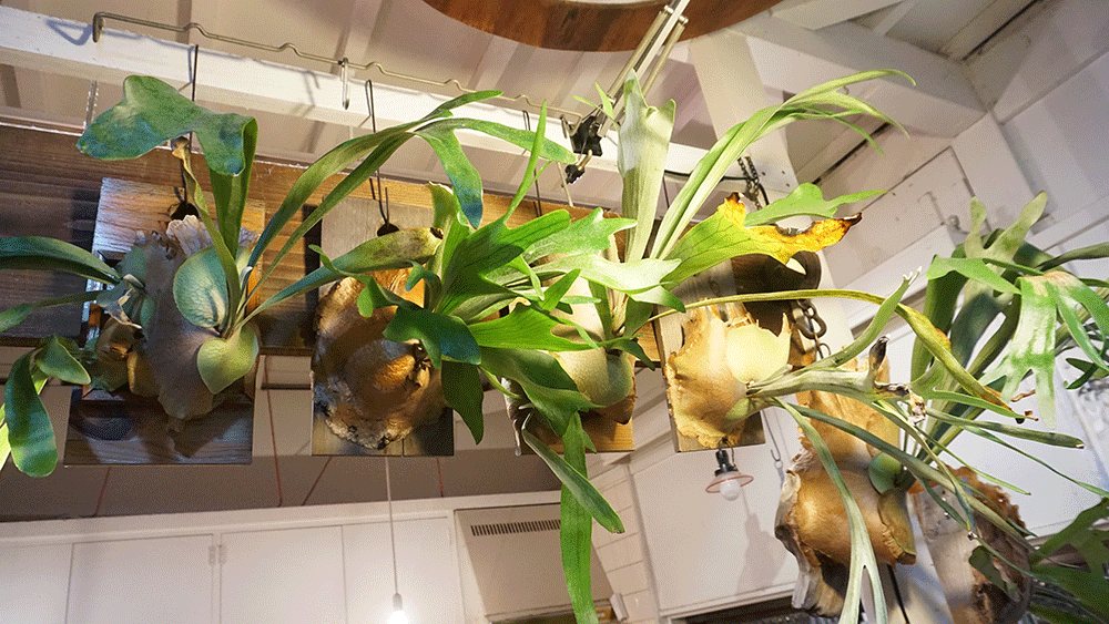 ビカクはやはり壁掛け、背景は濃い色が綺麗に見えると思います。水やりの時は庭でしばらく干してからまた室内に入れる、という手間がありますが、鉢植えのままよりは自然に近い形なのでより、元気に育ってくれると思います。