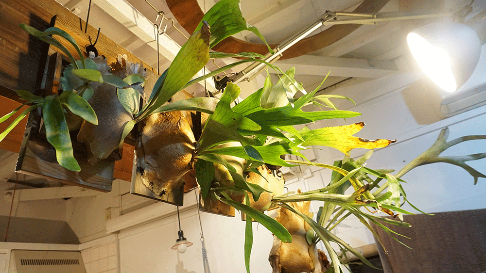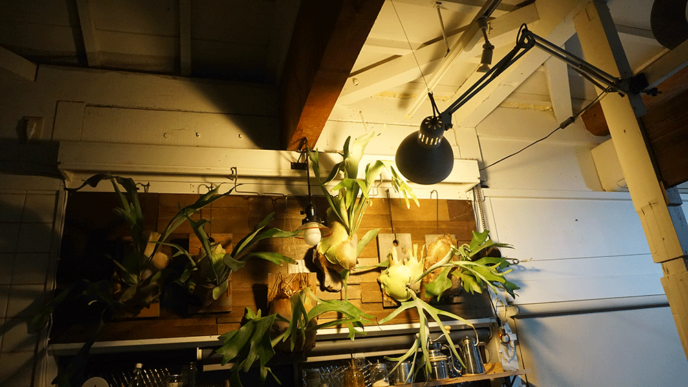角度的に右側のビカクたちにしか当たりませんが、左側はキッチンの照明が当たるのでこれで良しとします。