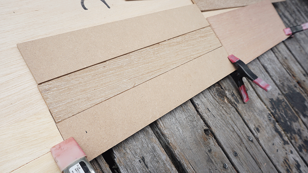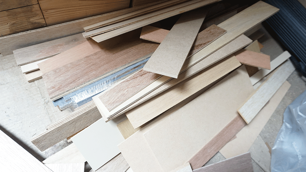 今回はなるべくシンプルな見た目にしたいので、ハギレベニヤの厚みはある程度統一して、うるさくなりすぎないようにしていきます。