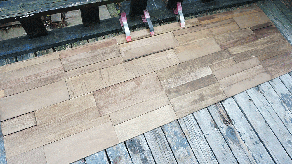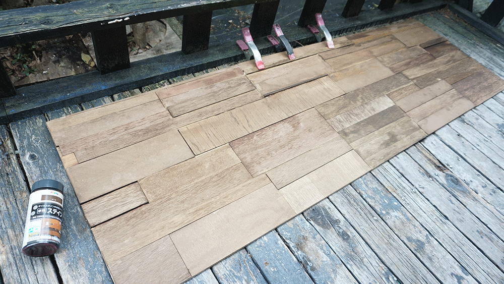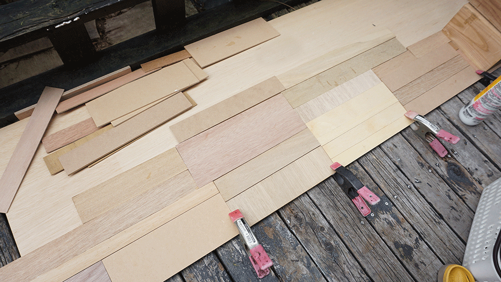 前回ウッドウォールを作った時と同様にベニヤの端切れをかき集めて、パズルのように組み立ていきます。