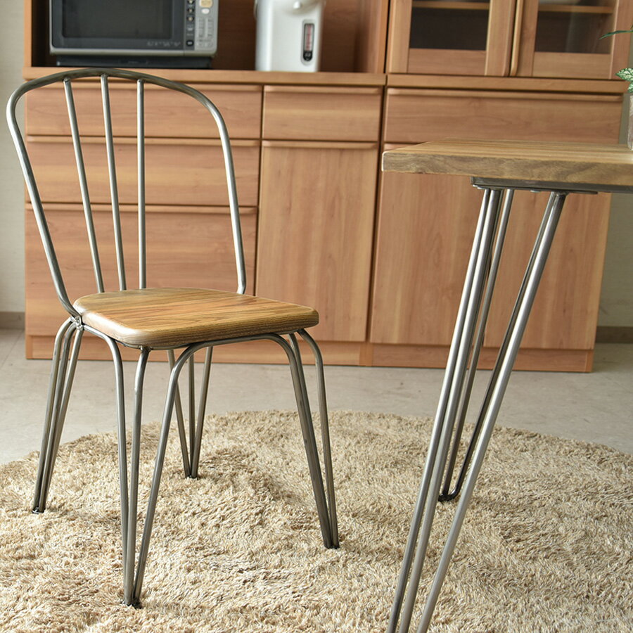エルム無垢材とスチールの組み合わせ。アイアンの抜け感と丸みでインダストリアルながら優しい印象です。どの部屋にも合いそう。