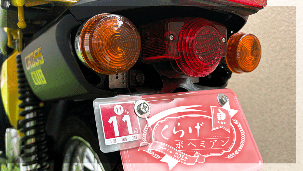 クロスカブJA10に乗り換えたので、ナンバープレートを新しく取得し取り付けようと思ったのですが、自賠責保険のステッカー、いつもどこに貼ろうか迷います。