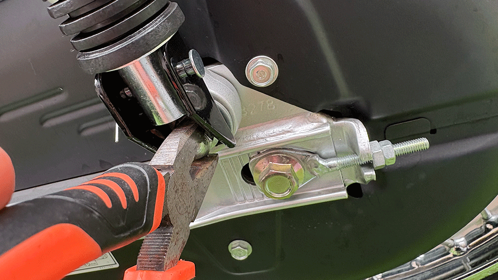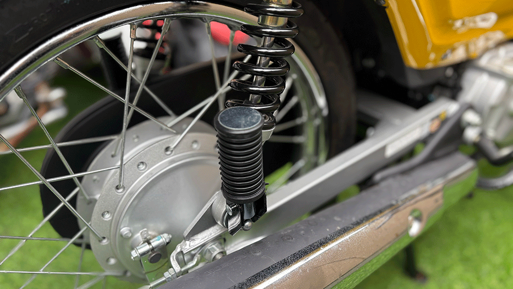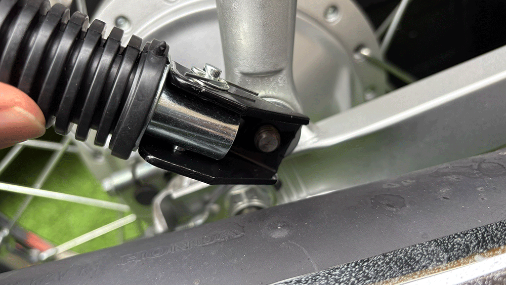 タンデムステップの取り付け位置は、サスペンションのタイヤ側のナットがついている場所です。