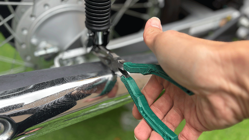 逆側も同じようにしますが、マフラーがある分やや、難しかったです。
