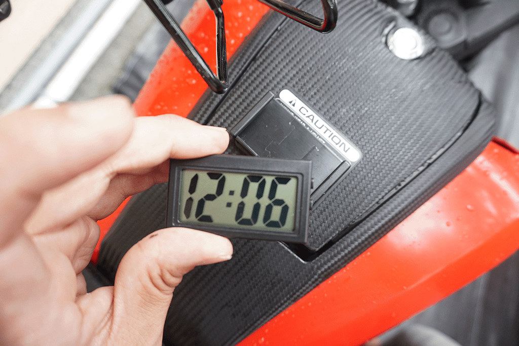夏場は腕時計でもいけますが、冬は運転中に時計を見る事が難しくなるのでバイク自体に時計をつけられたらとても便利です。