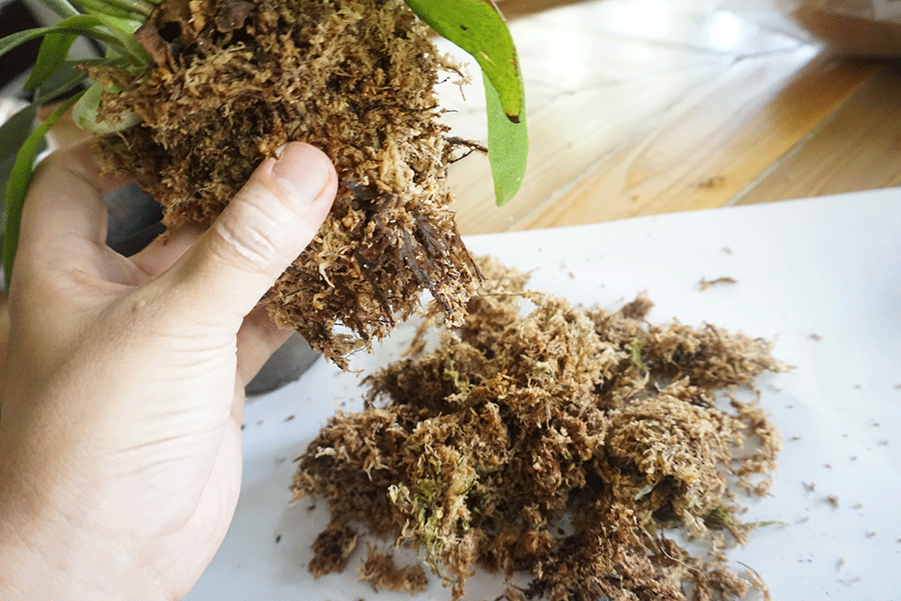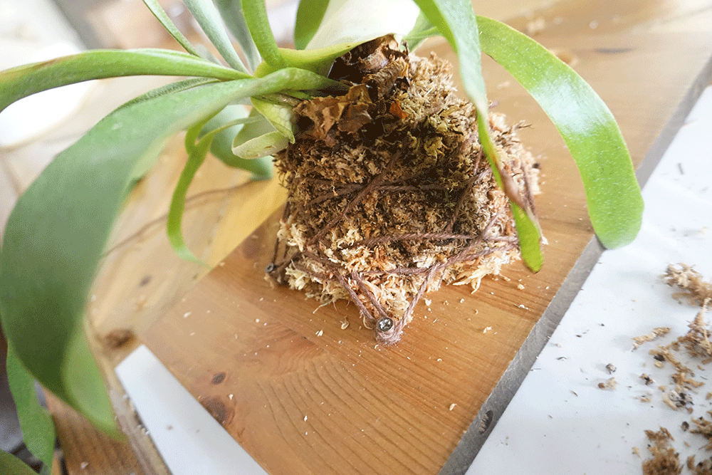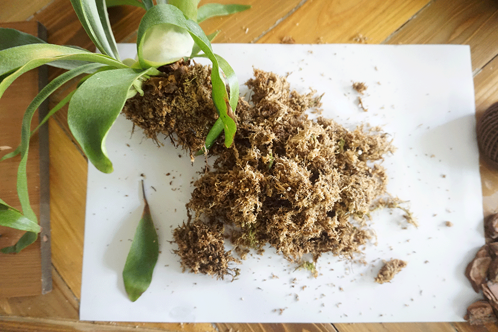 ビカクシダを鉢から出す前に新しいミズゴケを用意しておきます。